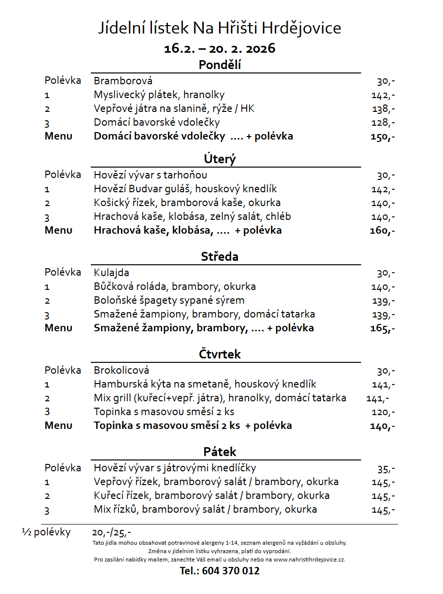 Aktuální otevírací doba je zveřejněna na Facebooku.
